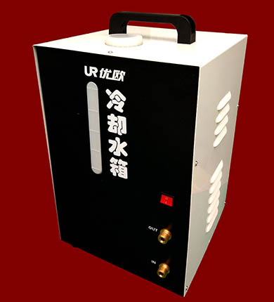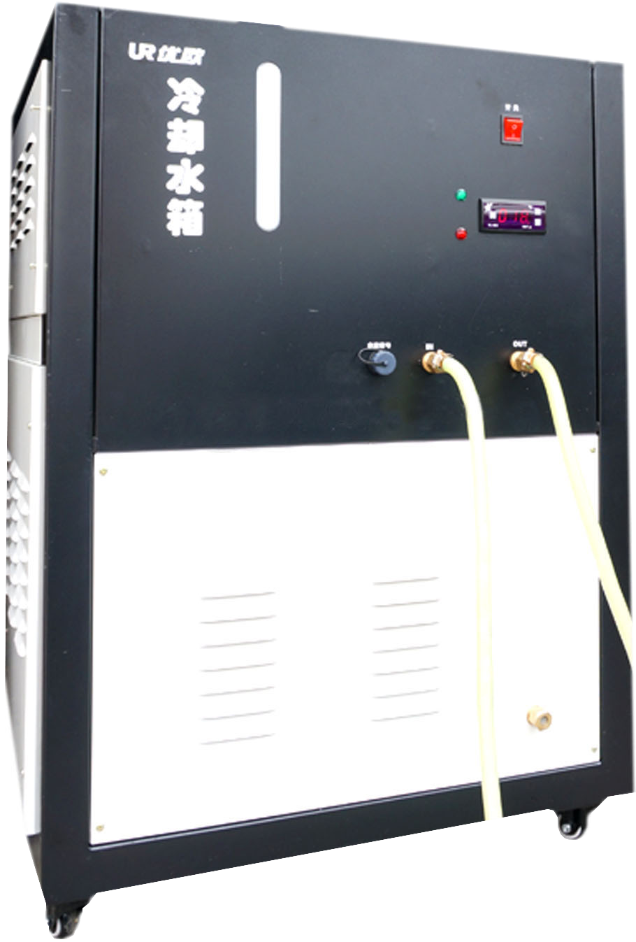 风冷冷水机、冰水机(Air Cooled Chiller),主要由:箱体、水泵、水管路、冷媒管路、压缩机、干燥过滤器、蒸发器、冷凝器和强力风扇、耐高低温的储水桶和补水桶、温控系统等组成。
